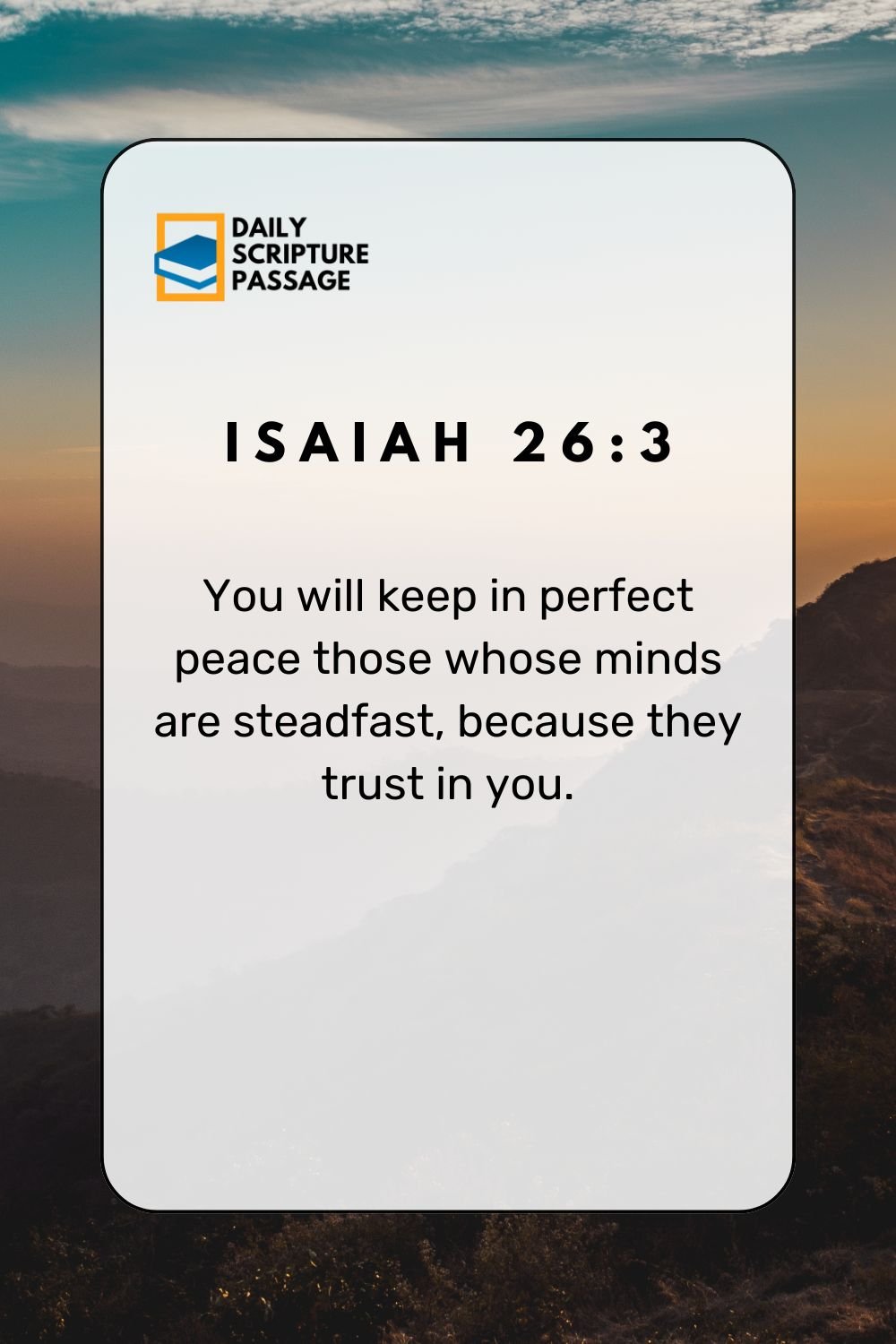 "You will keep in perfect peace those whose minds are steadfast, because they trust in you." Isaiah 26:3 (NIV)